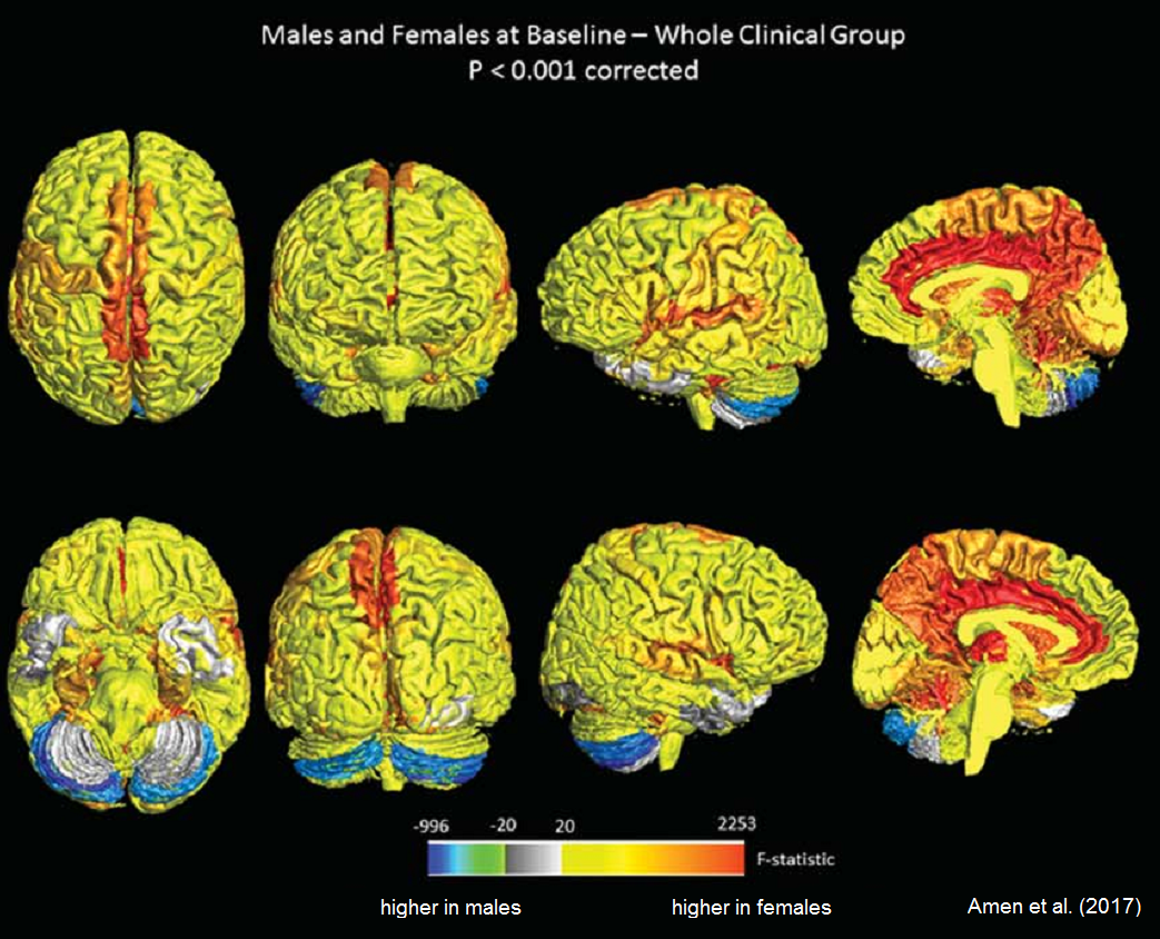 El cerebro de la mujer es más activo que el del hombre, tanto en la población sana, como en pacientes con trastornos mentales. A esta conclusión llegaron los científicos de la clínica Amen Clinics de California, que analizaron más de 20.000 imágenes funcionales del cerebro. El cerebro femenino es, en promedio, 10% más activo que el de los hombres. El estudio fue publicado en la revista Journal of Alzheimer’s Disease.