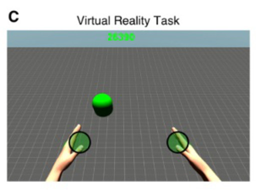 En el experimento, en varios bloques de ensayos, se solicitó a los participantes con diagnóstico de accidente cerebrovascular hemiparético que alcanzaran objetos que aparecían en un entorno virtual.