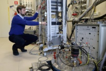 Andrea Gamucci, trabajando en un sistema de mediciones eléctricas. Imagen: Andrea Freccioni. Fuente: Scuola Normale Superiore.