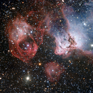 Las formas filamentosas a la izquierda de la imagen, explica la nota de prensa de ESO, no son el resultado del nacimiento de estrellas, sino más bien de su muerte. Fueron creadas por uno de los eventos más violentos que pueden darse en el universo: una explosión de supernova. Estas explosiones son tan brillantes que, a menudo, durante un corto periodo de tiempo, iluminan toda la galaxia que las aloja antes de debilitarse y hacerse menos visibles durante semanas o meses.