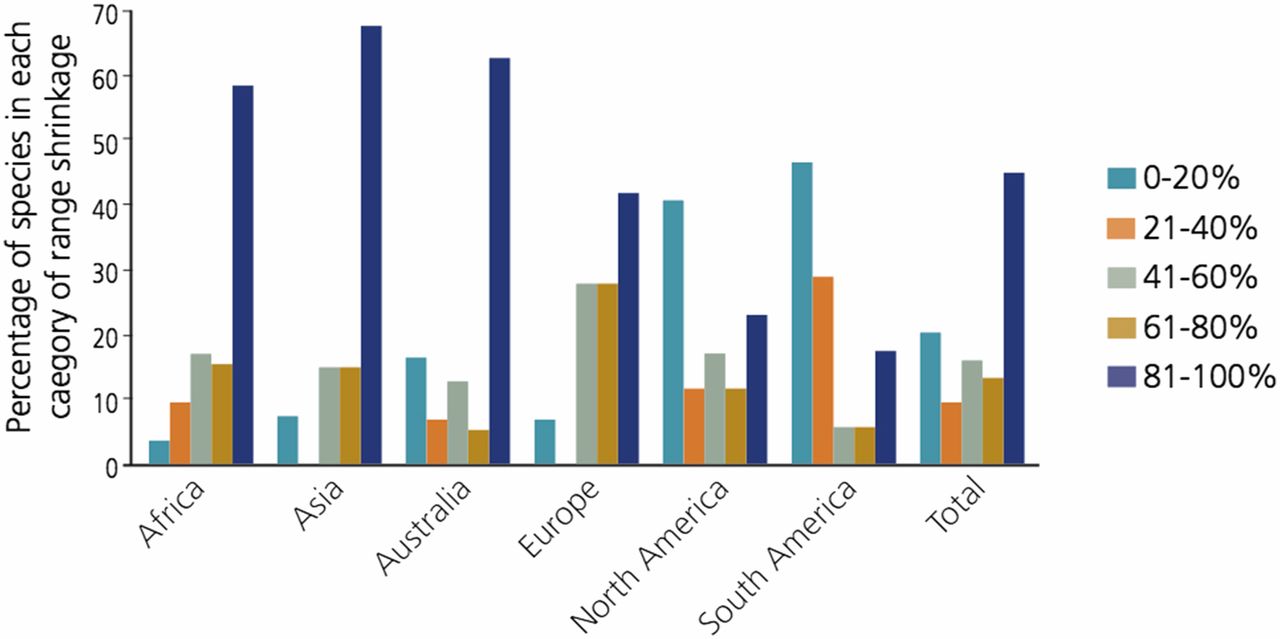 Los porcentajes de las especies de mamíferos terrestres de los cinco continentes experimentan diferentes niveles de declive en el período 1900-2015. PNAS.