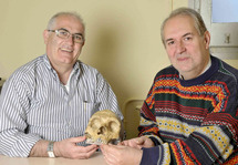 BIenvenido Martínez-Navarro y Policarp Hortolà con una réplica de cráneo neandertal. Imagen: IPHES.