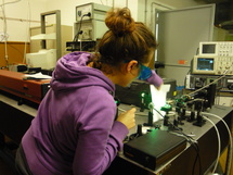 Flaminia Rondino trabjando con los láseres Ion Argon y Helium Neon. Foto: Autora.