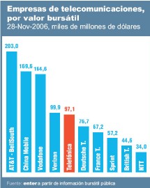 Desde el punto de vista operativo, cabe destacar el crecimiento experimentado por los accesos totales, hasta 195,9 millones (+ 33,1 por 100 interanual), resultado del éxito de las políticas comerciales desarrolladas en los negocios en crecimiento, principalmente telefonía móvil y banda ancha. Los accesos celulares alcanzan 138,4 millones (+ 47,9 por 100), mientras que los clientes minoristas de Internet de banda ancha sumaban 7,3 millones a septiembre de 2006.