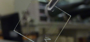 Por lo general, los investigadores colocan una solución especial, que contiene moléculas ricas en carbono y un plástico complementario, en un plato giratorio; en este caso, uno de vidrio. La acción del giro deposita una fina capa de los materiales sobre el plato.