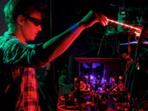 El profesor Matthew Broome probando el prototipo Boson Sampling. Fuente: UQ