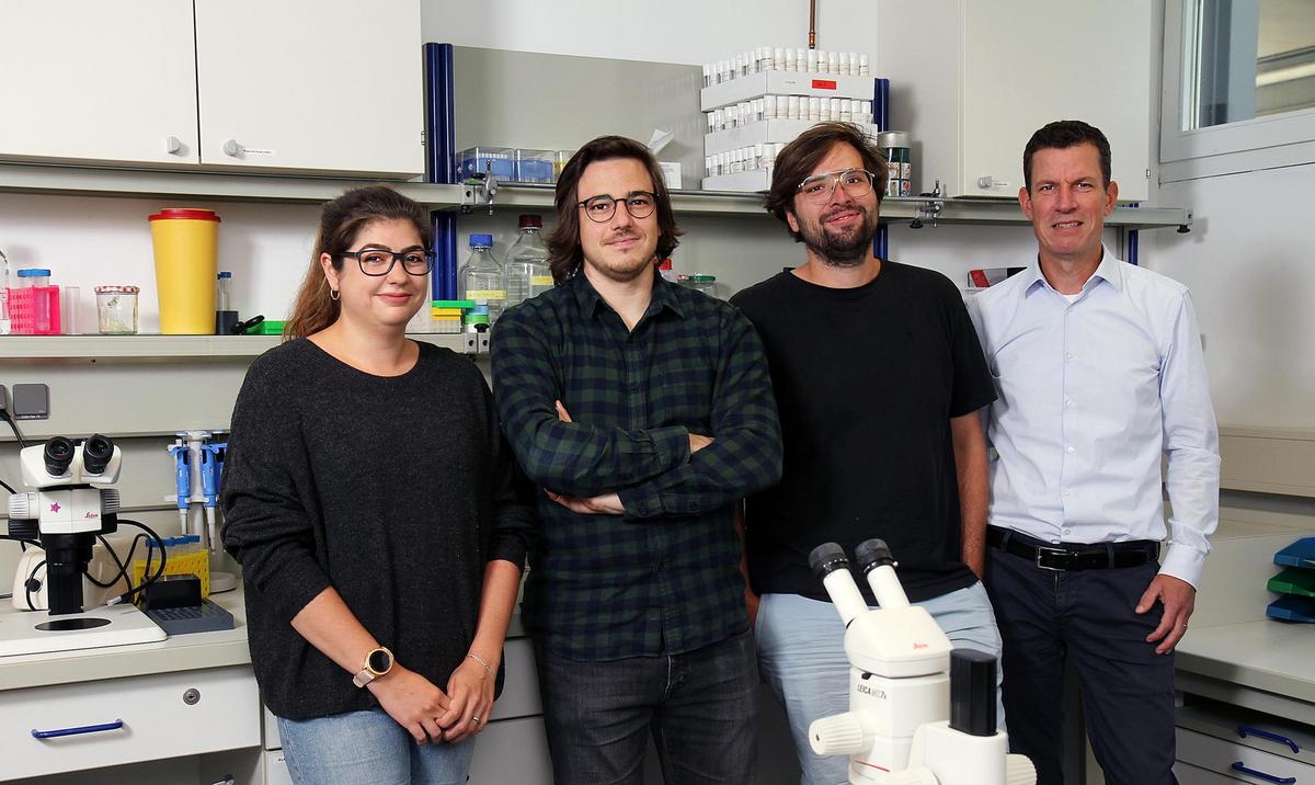 Los autores de esta investigación (de izquierda a derecha): Vanessa Bräuler, Benjamin Escribano, Dominique Siegenthaler y el Prof. Dr. Jan Pielage. Crédito: Koziel / TUK