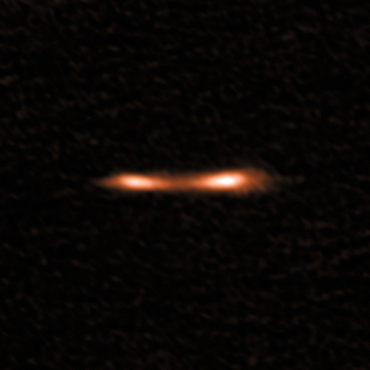 Esta imagen de ALMA muestra una galaxia starburst distante que aparece doblada e iluminada por la lente gravitacional. ALMA (ESO/NAOJ/NRAO)/E. Falgarone et al.
