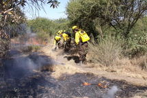 Brigadistas sofocando un incendio forestal. Fuente: Wikimedia Commons.