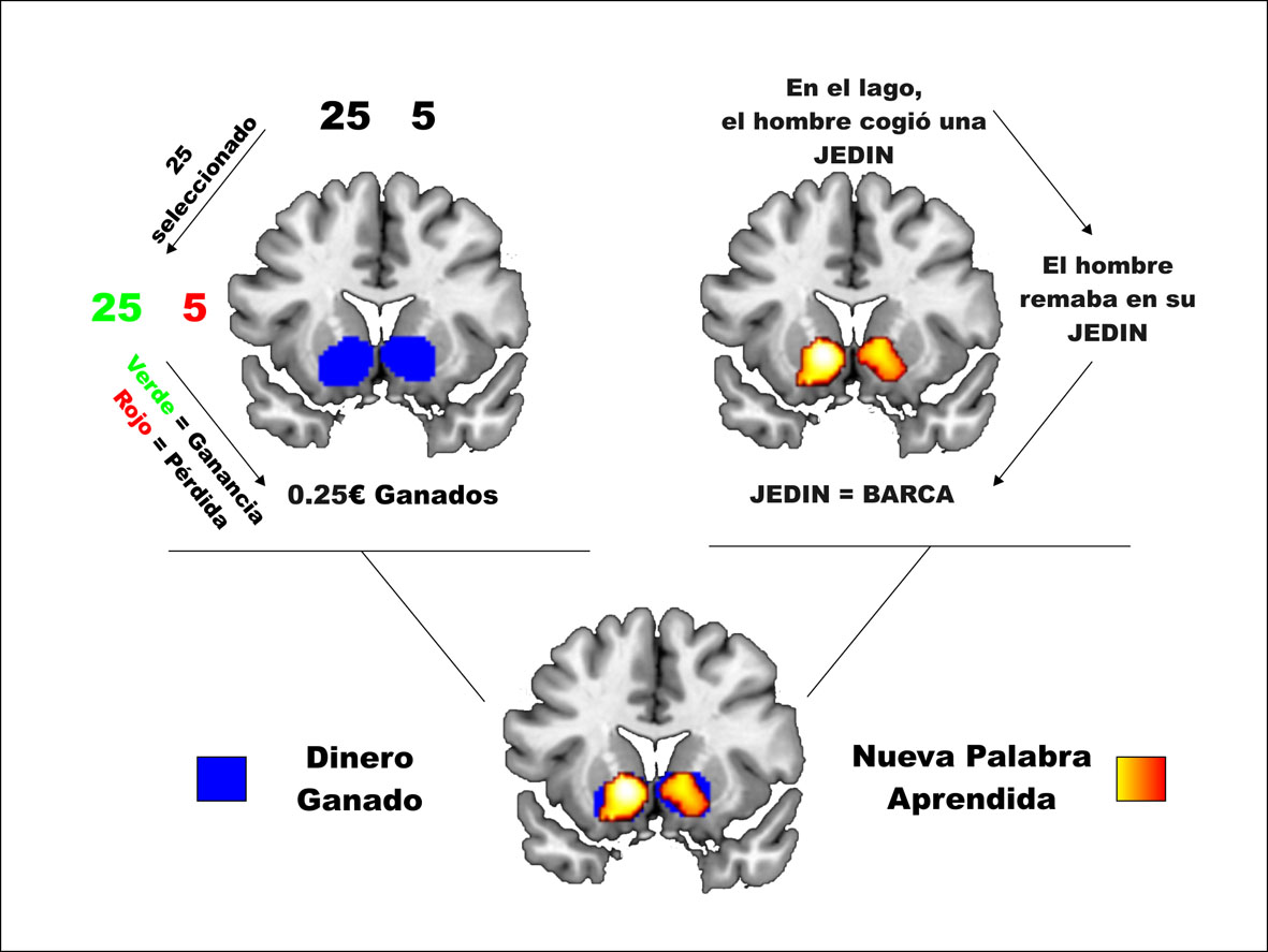 Por lo tanto, para el cerebro, aprender el significado de una palabra nueva activaba los circuitos de recompensa en la misma medida que ganar dinero. Además se vio que el aprendizaje de estas palabras nuevas iba acompañado de un aumento en la sincronización de la actividad neuronal entre el estriado ventral y otras áreas corticales relacionadas con el procesamiento del lenguaje.