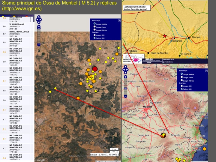 Ayer, 23 de febrero de 2015, se registró en el centro de la Península Ibérica un terremoto de magnitud 5.2 en la escala de Richter, con epicentro cercano a la población manchega de Ossa de Montiel.