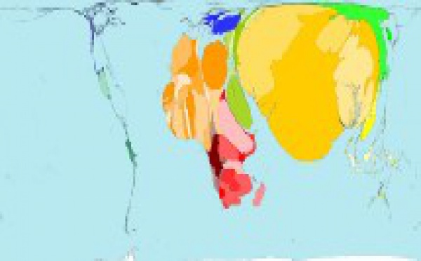 Combinando la geografía y la geometría esférica con la estadística, investigadores norteamericanos han construido una inédita visión gráfica del mundo. Se trata de un total de 212 mapas que cubren 200 territorios con más de 130 millones de kilómetros cuadrados e incluyen al 99,95% de la población mundial. Estos mapas hacen que los países parezcan balones inflables, que cambian de tamaño según ciertas variables, como la cantidad de armas que tenga cada nación, la cantidad de juguetes, el número de personas sin alfabetizar o el número de especies que se hayan extinguido dentro de sus fronteras, entre muchas otras. Se trata del “Worldmapper Project”, un nuevo mapa para un mundo nuevo.
