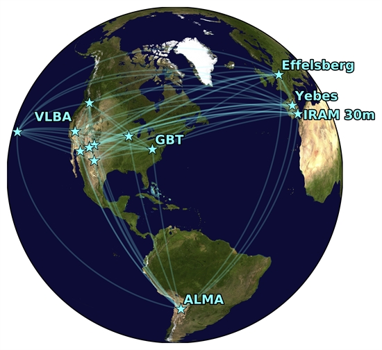 Para medir esto, se requiere de la técnica denominada Interferometría de Muy Larga Base (VLBI, por sus siglas en inglés). Gracias a una red global de radiotelescopios llamada Global mm-VLBI Array (GMVA), repartidos por toda la Tierra, se emuló un telescopio virtual del tamaño de nuestro planeta para potenciar la resolución del telescopio ALMA.