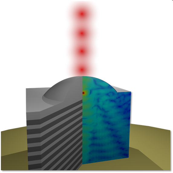 Otro problema para los matemáticos era garantizar el flujo de corriente a través del sustrato apropiado y luego calcular la cantidad de luz que finalmente sale de la lente. Esta no es una tarea trivial, ya que los metales también absorben la luz. "Todos estos son requisitos previos para decidir si vamos a obtener un diseño manufacturable y comercial de este efecto físico", añade Wohlfeil.