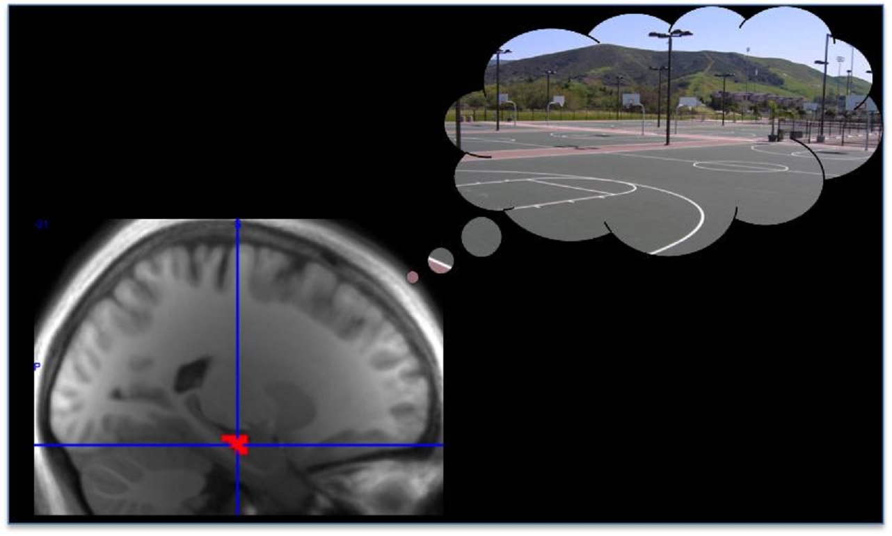 Utilizando imágenes por resonancia magnética, los científicos identificaron una señal en el hipocampo asociada con la memoria de recompensa, en este caso relacionada con una cancha de baloncesto. Imagen: C. Ranganath. Fuente: UC Davis.