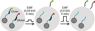 Estas ondas débiles atravesarían el cuerpo sin dañarlo y provocarían que las nanopartículas se calentasen. El calor derretiría las ataduras, formadas por dos hebras de ADN unidas por enlaces de hidrógeno. El ADN es un material sensible al calor, según señalan los investigadores en dicho comunicado, por lo que al recibirlo se rompería la unión entre hebras, quedando una en la nanopartícula y permitiendo que la otra se vaya con el “cargamento”.