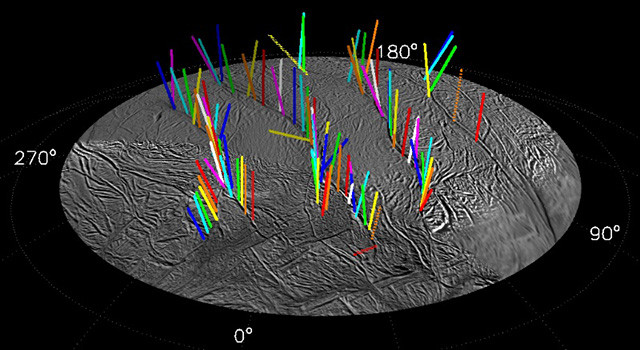 Los datos de Cassini han permitido ahora realizar un mapa de un total de 101 de estos géiseres, en erupción en las "rayas de tigre". También descubrir que son coincidentes con pequeños puntos calientes, una relación que ha indicado el camino para desvelar un misterio: el verdadero origen de dichos géiseres, hasta ahora desconocido.