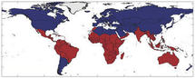 En rojo, los países donde la mayoría de la población vive en zonas muy cálidas durante los años de El Niño. Imagen: Nature