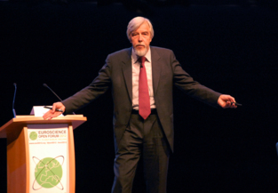 Rolf-Dieter Heuer durante su conferencia en ESOF 2012 en Dublín. Imagen: SINC