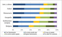 Preguntados los europeos por los temas o factores que les unen o les separan, responden que el arte y la cultura es lo que más une, seguido del fútbol y la democracia. La geografía y las instituciones europeas son más divisivos, aunque la que más divide es la religión.