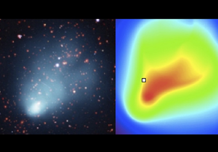 Los doctores Broadhurst y Molnar han conseguido obtener una solución computacional única para esta colisión debido a la forma de cometa del gas caliente, y a las ubicaciones y las masas de los dos núcleos de materia oscura que se han atravesado el uno al otro en un ángulo oblicuo a una velocidad relativa de unos 2.200 km/s. Esto significa que la liberación total de energía es superior a la de cualquier otro fenómeno conocido, con la excepción del Big Bang.