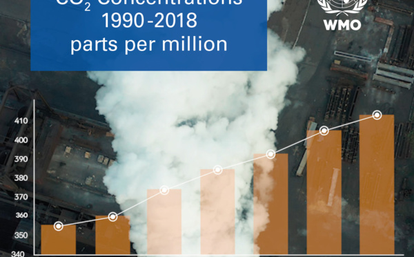 La concentración media mundial de dióxido de carbono en la atmósfera alcanzó las 407,8 partes por millón en 2018, tras haber sido de 405,5 ppm en 2017. La última vez que se dio en la Tierra una concentración de CO2 comparable, fue hace entre 3 y 5 millones de años.