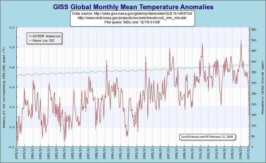 Otras observaciones señalan asimismo, a partir de informes de satélite, que enero de 2008 ha sido el más frío desde el año 2000. Según los datos numéricos de GISTEM +dSST, la anomalía de la temperatura global en enero 2008 fue 0,12º C, la lectura más fría desde mayo 1995, cuando fue 0,08ºC.