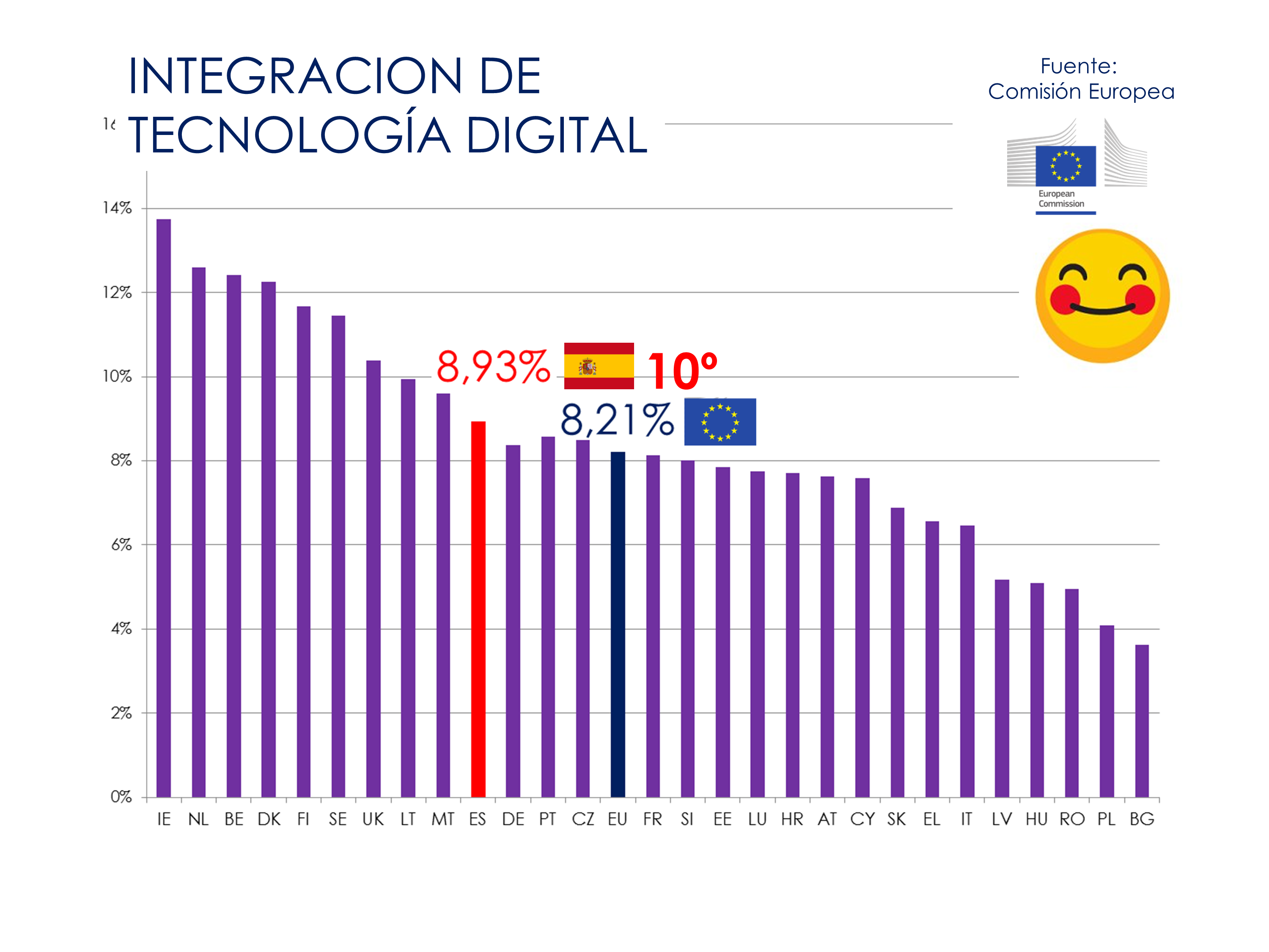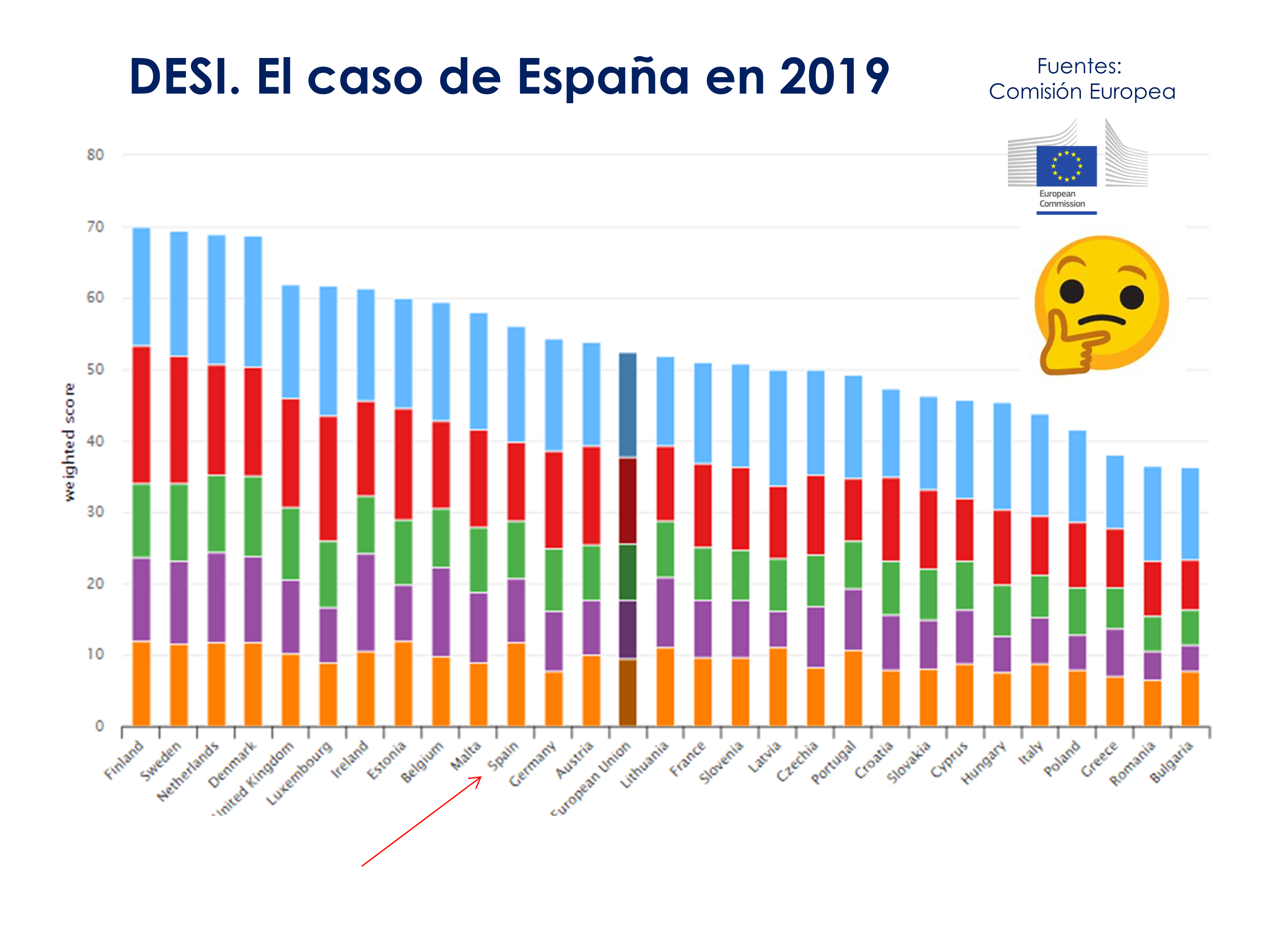 DESI permite observar la realidad del avance de la digitalización en cada país. España, en un meritorio puesto 11 del ranking, tras Malta, ve recompensados sus esfuerzos en la digitalización de su sociedad. Sin embargo, para el potencial existente en España unos mayores esfuerzos y una mayor coordinación permitirían ofrecer resultados más prometedores en el índice DESI de digitalización de la sociedad europea.