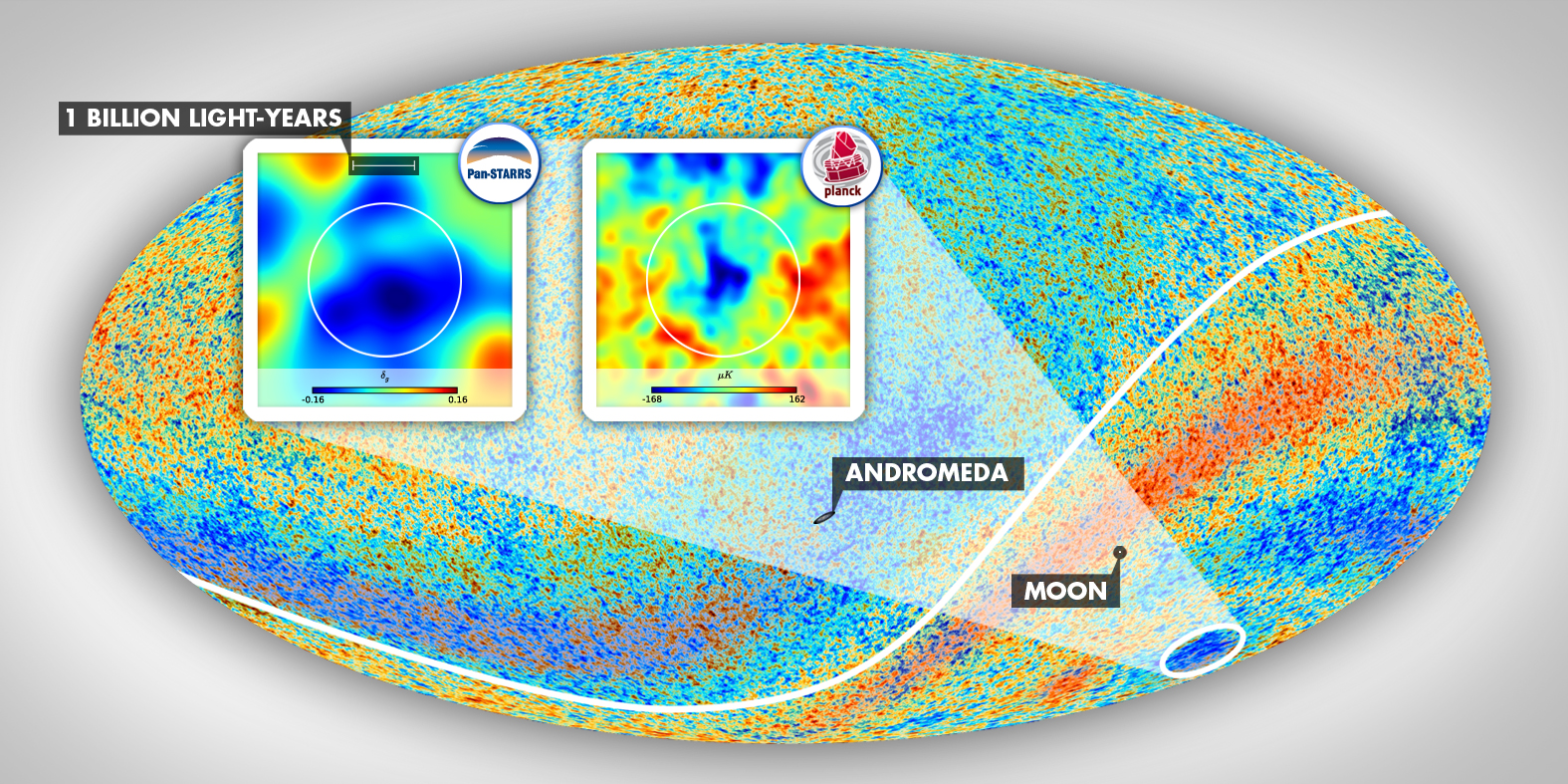 A partir de todas estas informaciones encontraron un gran supervacío entre el observador (ellos) y el CMB: una vasta región de 1.800 millones de años luz de  diámetro, en la que la densidad de las galaxias es mucho menor de lo habitual en el universo conocido. Resulta que estudios previos realizados también en Hawai ya habían observado un área de este tipo en la dirección del Punto Frío WMAP, aunque mucho más pequeña.