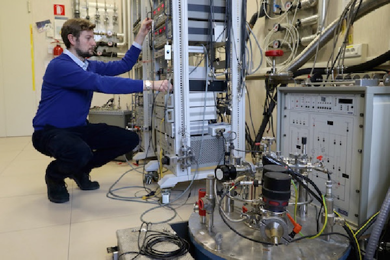 Andrea Gamucci, trabajando en un sistema de mediciones eléctricas. Imagen: Andrea Freccioni. Fuente: Scuola Normale Superiore.