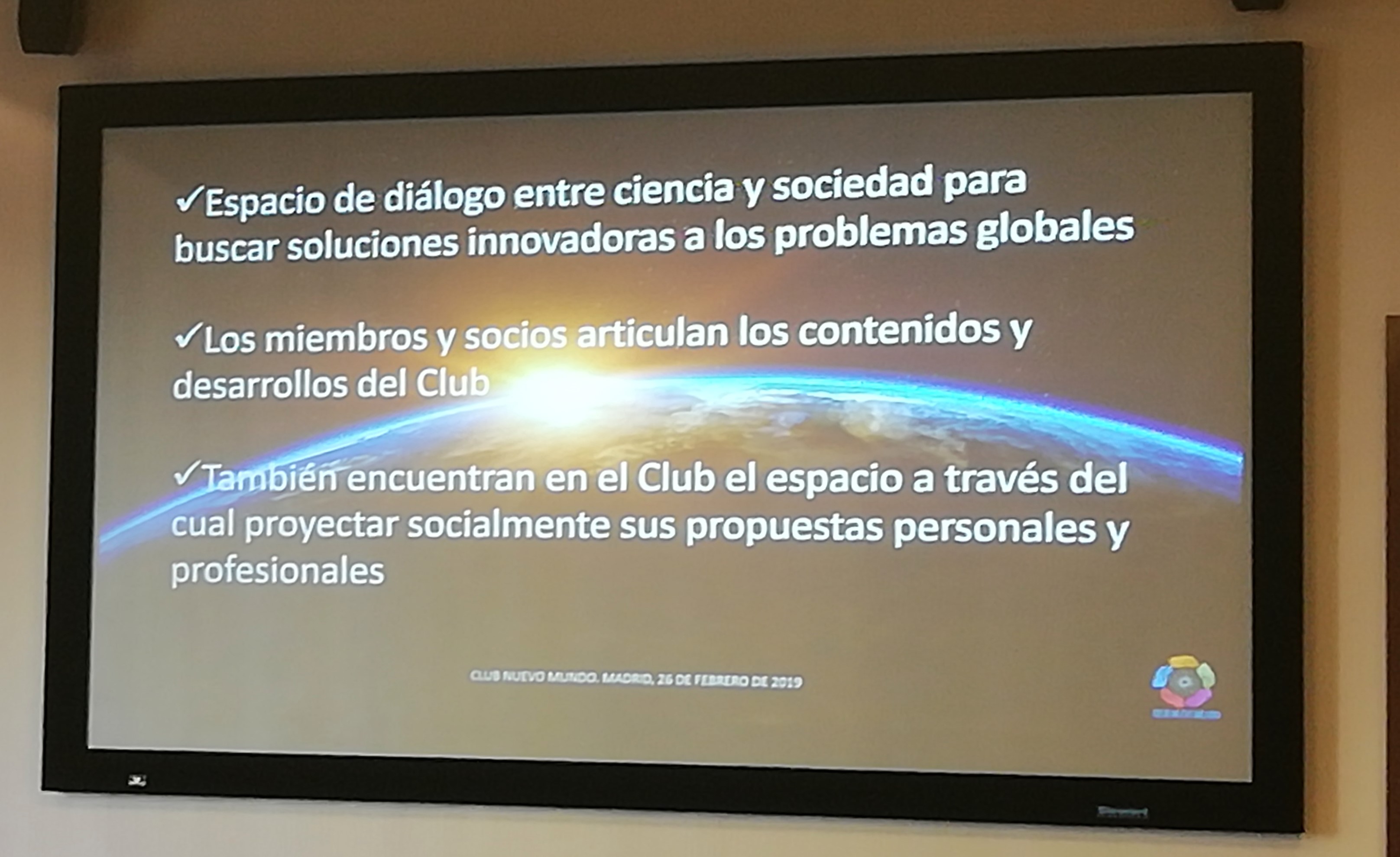 El pasado martes, 26 de febrero de 2019, se celebró en Barajas (Madrid) la primera mesa redonda del Club Nuevo Mundo, un espacio de diálogo entre ciencia y sociedad orientado a buscar soluciones innovadoras a los problemas globales que nos afectan a los seres humanos.