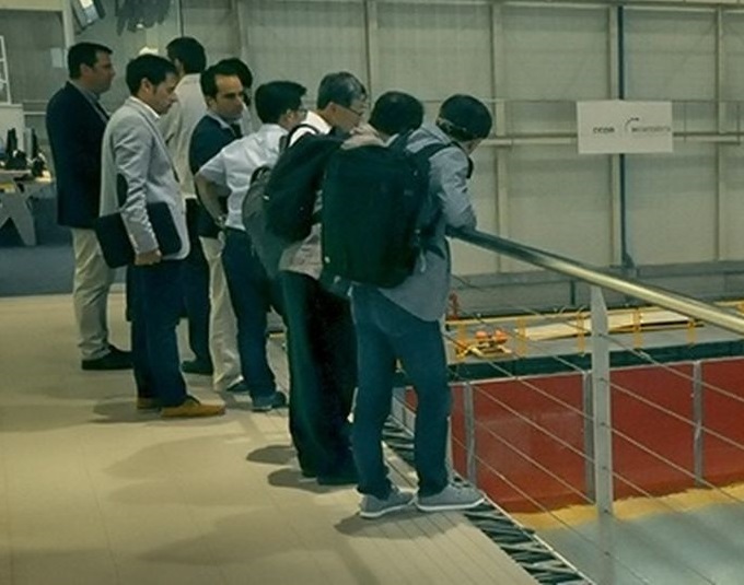 Directivos del Instituto Coreano de Investigación de Buques e Ingeniería Oceánica visitan el Gran Tanque de Ingeniería Marítima del IHCantabria. Fuente: IHCantabria.