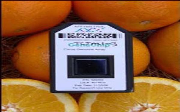 El primer chip para cítricos de carácter comercial ha sido desarrollado por genetistas de la Universidad de California. El chip está fabricado con un millón de partículas del AND de los cítricos y es capaz de detectar cómo están actuando los genes de la fruta. Identifica por ejemplo los genes asociados con el sabor o con...