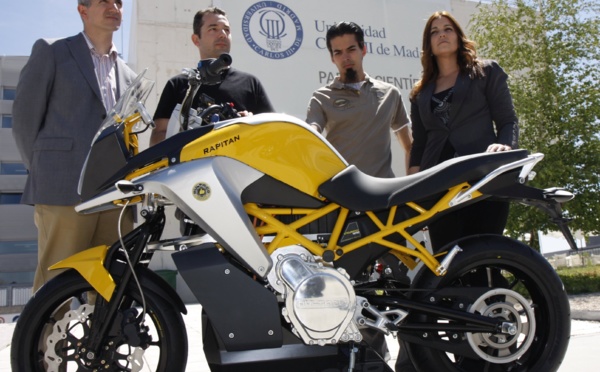 Ingenieros de la UC3M han desarrollado una moto eléctrica inteligente con una autonomía de hasta 200 km en ciudad, gracias a su sistema de recuperación de energía. La máquina, que tiene totalmente integrados tanto el sistema mecánico como el eléctrico, permite una comunicación entre piloto, moto y una aplicación móvil, de tal forma que recibe datos del entorno y hace más eficiente la conducción.