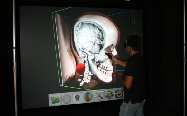 Investigadores de la Universidad Politécnica de Cataluña han diseñado una pared virtual que permite visualizar e interactuar con objetos mediante imágenes estereoscópicas. Está equipada con una 'linterna mágica virtual', un sistema único hasta ahora para inspeccionar con gran detalle, por ejemplo, cualquier parte del cuerpo humano, desde la piel, pasando por los músculos y las venas, hasta los huesos.