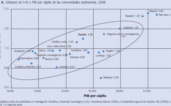 La innovación española se encuentra en un momento delicado debido a la crisis. Las doscientas empresas con más gasto en I+D han disminuido en 2009 su gasto en un 8,8%, como consecuencia de haber reducido sus inversiones en un 40% y su gasto corriente en un 1,5%, si bien el número de personas dedicadas a I+D ha crecido un 3%. Estos datos, que sin duda reflejan la situación de crisis, también muestran que, pese a ella, las grandes empresas, aunque recortan sensiblemente las inversiones para mejorar su capacidad innovadora, prácticamente mantienen sus gastos operativos en I+D, e incluso aumentan ligeramente su personal.