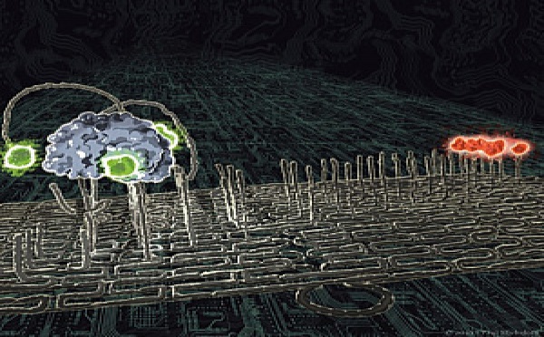 Un equipo de investigadores de Estados Unidos ha conseguido que un robot molecular fabricado con ADN se ponga en marcha, se mueva, cambie de dirección y se detenga de manera completamente autónoma. Con forma de araña con cuatro patas, el robot recorrió un entorno creado específicamente para controlar sus movimientos.