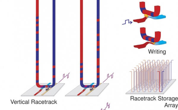 Científicos de IBM y de la Universidad de Leeds acaban de publicar la consecución de nuevos avances en el desarrollo de la llamada memoria racetrack, una tecnología que podría convertirse en el método estándar de almacenamiento de información de los ordenadores personales del futuro. Las ventajas de este tipo de memoria van desde su aguante o su coste, mucho más barato que el de los discos duros actuales, hasta su velocidad: la búsqueda de cualquier información sería prácticamente inmediata. Se espera que los primeros prototipos se encuentren listos en dos años, y que aparezcan modelos comercializables en menos de una década.
