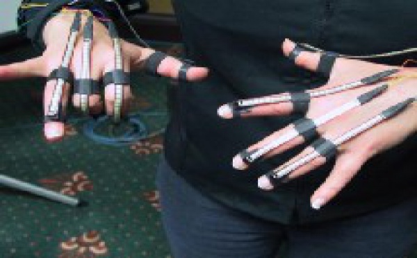 Tocar en el vacío o con el simple gesto de los dedos es un logro que sólo podía producir la tecnología. Un equipo de artistas multimedia liderados por el músico australiano Alistair Ridell, ha conseguido desarrollar un sistema que, mediante sensores instalados en ocho de los diez dedos de las manos, genera sonidos a partir sus movimientos. Los dedos pueden colocarse entre dos y 100 posturas distintas, generando así una música que es emitida desde ordenadores cercanos. Aunque la creación musical a partir de sensores ya había sido experimentada anteriormente, Ridell ha conseguido que, por vez primera, puedan crearla grupos formados por varios intérpretes.