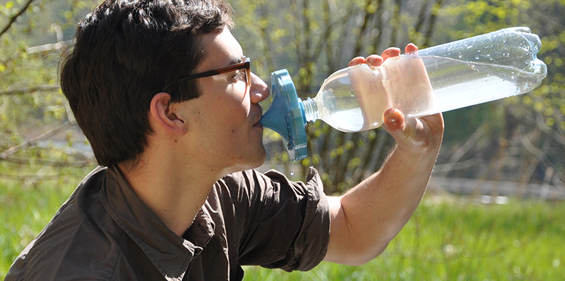 "Enroscándolo rápidamente en una botella se puede tomar un trago en cualquier estanque o río sin pensárselo dos veces", explica Nussbaumer. "Yo no soy un caminante habitual, pero si lo hiciera estoy seguro de que me llevaría el filtro.