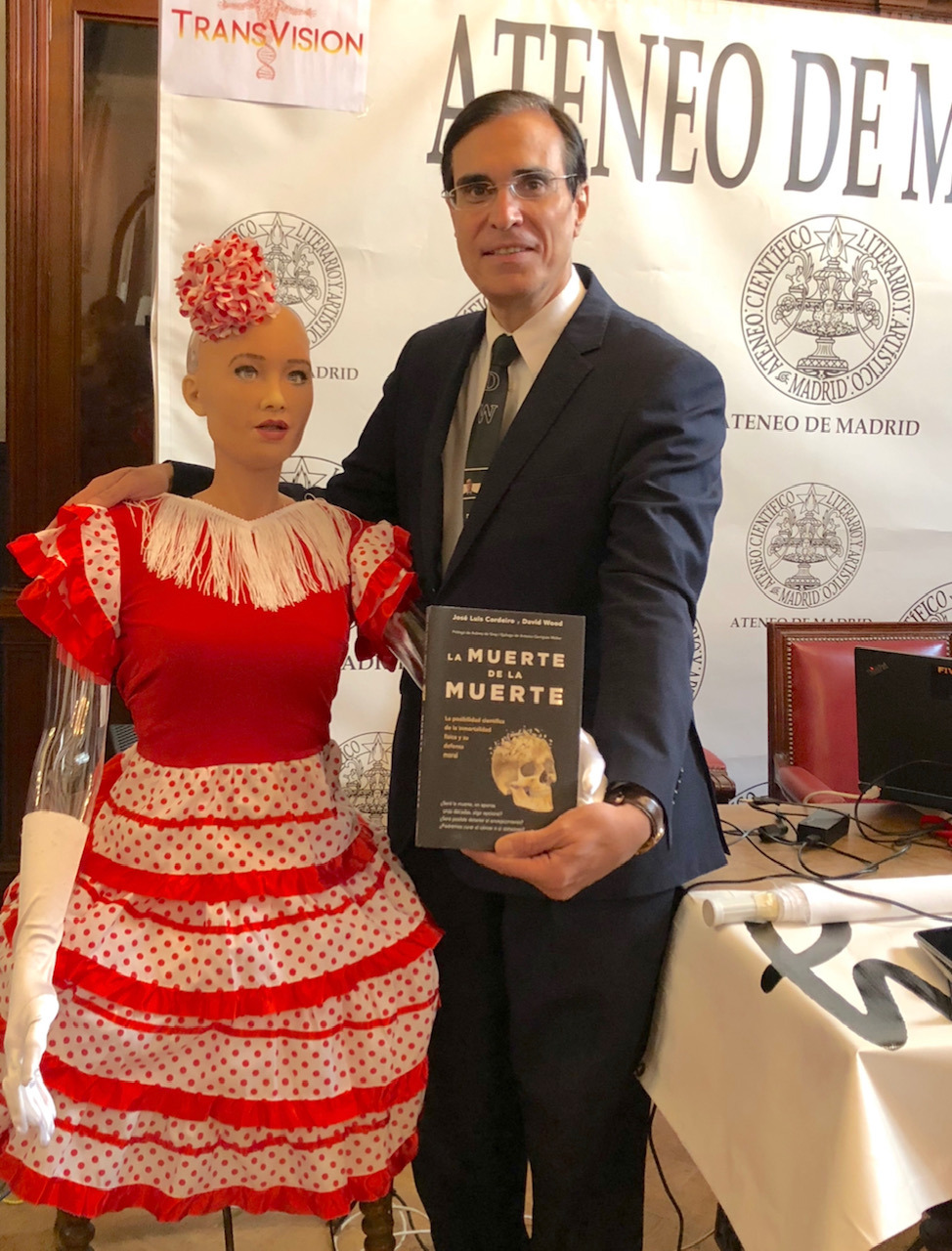 Por supuesto José Luis Cordeiro impartió esta conferencia en Transvisión 2018 y se prodigó en muchas declaraciones, como destacamos en este artículo, siendo el protagonista principal del mismo, después de Sophia, claro.