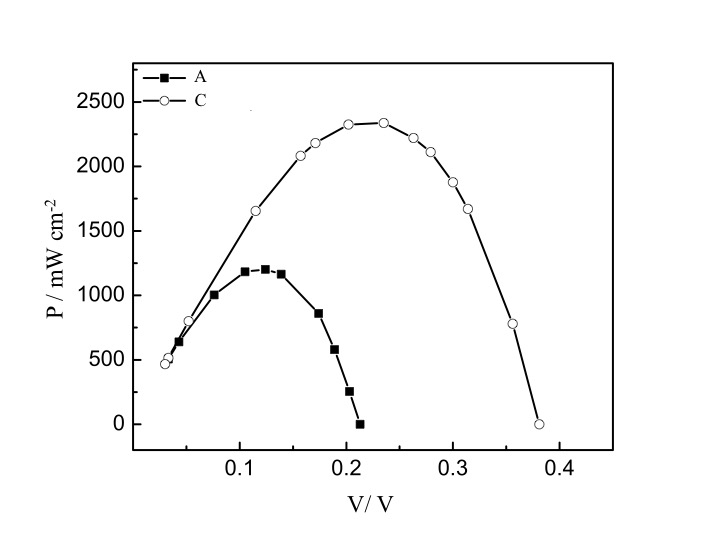 La Universidad de La Laguna ha ideado ahora un procedimiento que permitiría fabricar células solares muy eficientes y a un coste reducido. En la figura se muestra la curva de potencia bajo irradiación lumínica comparando el servicio de una placa solar convencional (A) con el de la presentada en la solicitud de patente (C), cuyo pico de potencia duplica al primero.