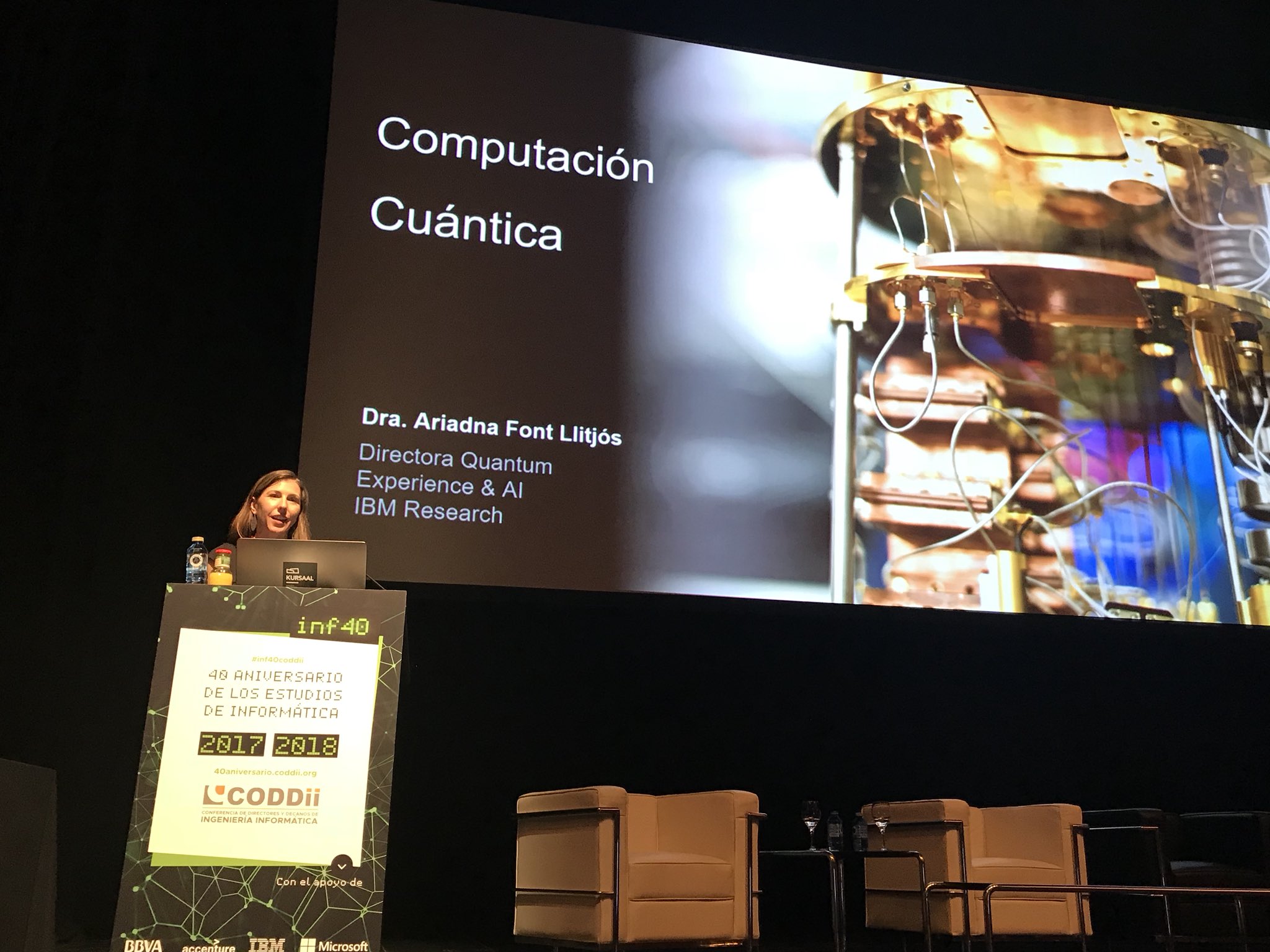A principios de noviembre estuvo en Donostia Ariadna Font, directora de AI Challenges y de IBM Quantum Experiences, para intervenir durante el acto del 40 aniversario de la puesta en marcha de los estudios universitarios oficiales de Ingeniería Informática en España, que organizado por la Conferencia de Directores y Decanos de Ingeniería Informática (CODDII), contó con la participación de más de 300 personas.