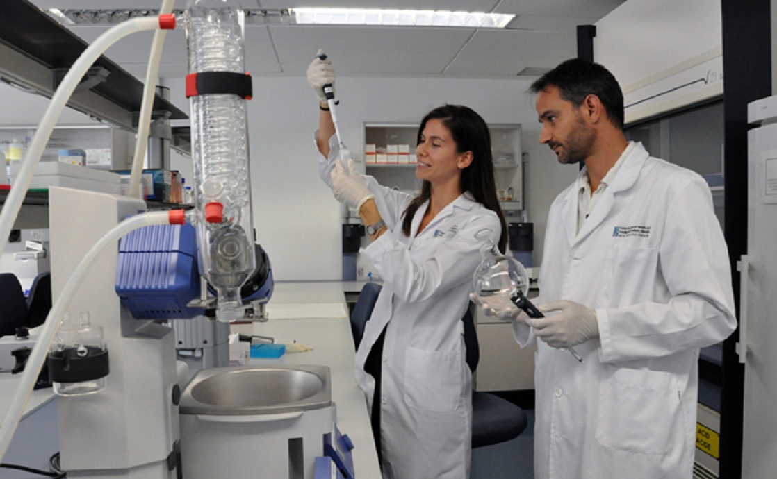 Los investigadores de Fundación Fisabio Majda Dzidic y Alejandro Mira, trabajando en uno de los laboratorios del Área de Genómica y Salud. Fuente: Fisabio.