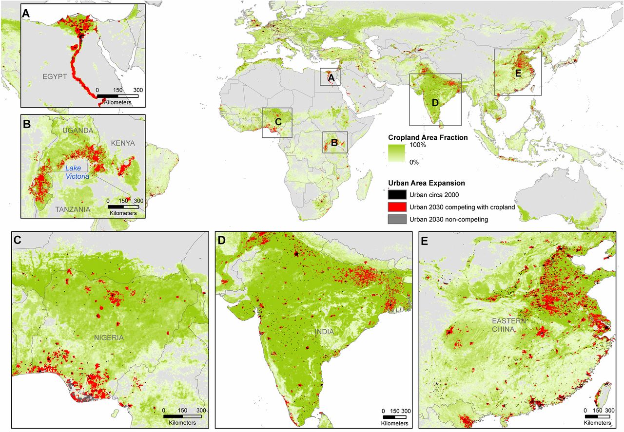 Future urban land expansion and implications for global croplands. Christopher Bren d’Amour et alia. PNAS. doi:10.1073/pnas.1606036114
