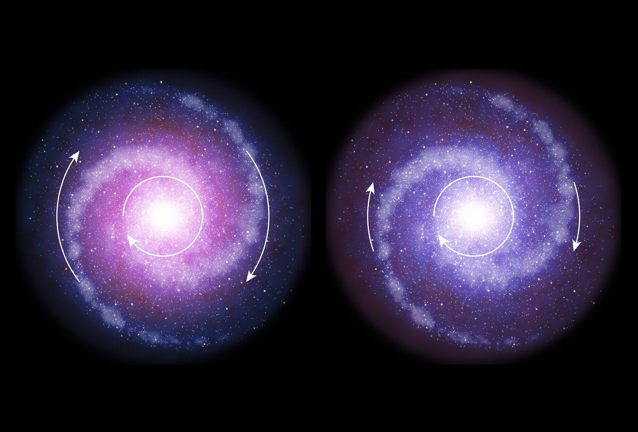 Ambos efectos parecen ser más marcados a medida que los astrónomos miran más lejos y más atrás en el tiempo, en el universo temprano. Esto sugiere que entre los 3.000 y 4.000 millones de años después del Big Bang, el gas en las galaxias ya se había condensado eficientemente en discos planos y rotantes, mientras que los halos de materia oscura alrededor de ellos eran mucho más grandes y estaban más dispersos hacia las zonas exteriores. Al parecer, la materia oscura necesitó miles de millones de años más para condensarse, por lo que su efecto dominante sólo se ve hoy en día.