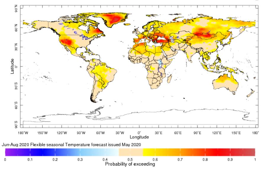 Según informa el Instituto para el Clima (IRI) de la Universidad de Columbia, las temperaturas superiores a la normal se registrarán este año en Groenlandia y diversas partes de Australia, Asia, África, América del Norte, América del Sur y Europa desde junio y agosto, hasta septiembre y noviembre.
