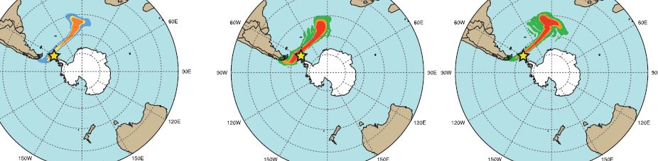 Esto puede ocurrir incluso en caso de erupciones moderadas, ya que podrían alcanzar latitudes tropicales, una gran parte de la costa atlántica de Sudamérica, Sudáfrica y el sur de Oceanía. Así pues, una dispersión de partículas volcánicas, más amplia de lo que se creía anteriormente, podría producir consecuencias significativas para la seguridad aérea en estas áreas.