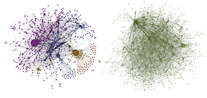 Usando seis fórmulas de búsqueda de centralidad, similares a los algoritmos de Google, los sistemas de análisis de influencia social en línea de Klout y los de Facebook, el equipo produjo representaciones visuales de la organización de los foros.