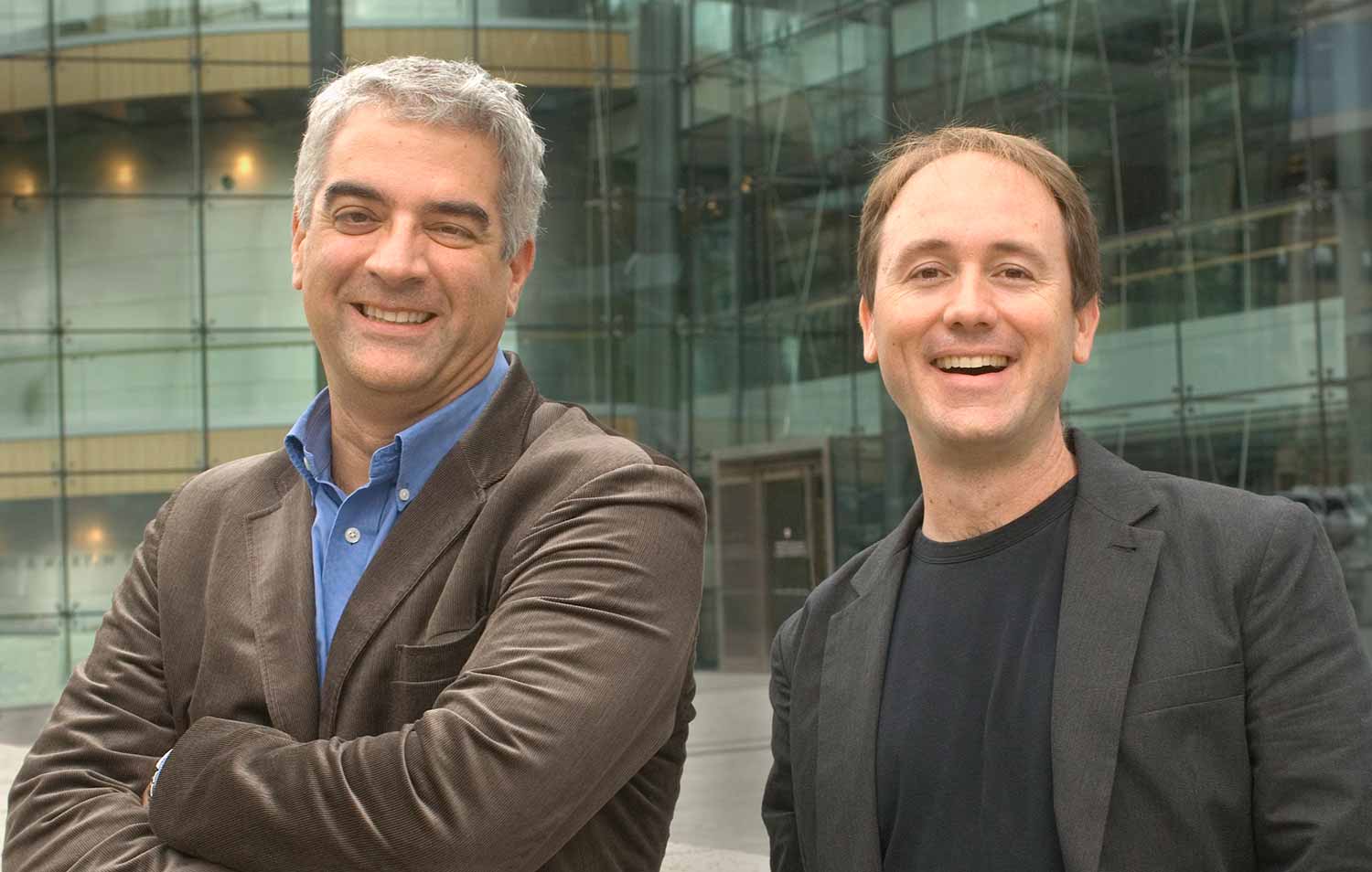 James Fowler (a la derecha) y Nicholas Christakis han demostrado que parejas de amigos comparten similitudes genéticas. Imagen: Liza Green. Fuente: UC San Diego News Center.